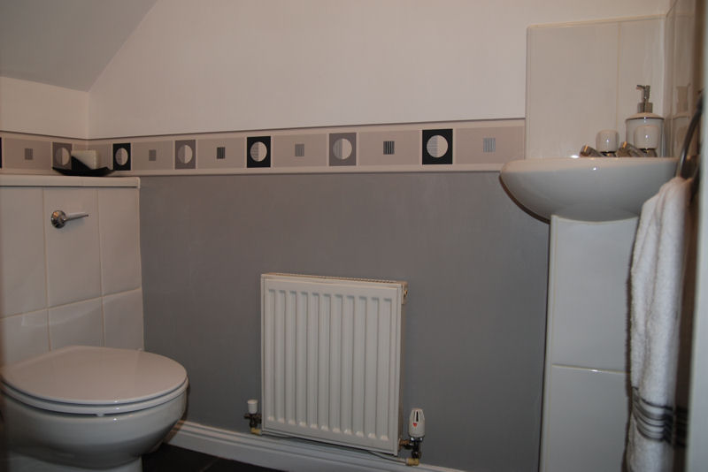 The downstairs cloakroom comprises wc and wash hand basin. Part-tiled walls and tiled flooring.
